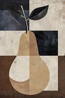 Deze abstracte creatie toont een gestileerde peer in aardetinten tegen een achtergrond van geometrische vormen en verschillende texturen. De subtiele samenstelling van sepia, beige en bruin straalt een natuurlijke en rustige sfeer uit. De organische vorm van de peer biedt een zacht contrast met de strakke lijnen van de achtergrond. Dit…