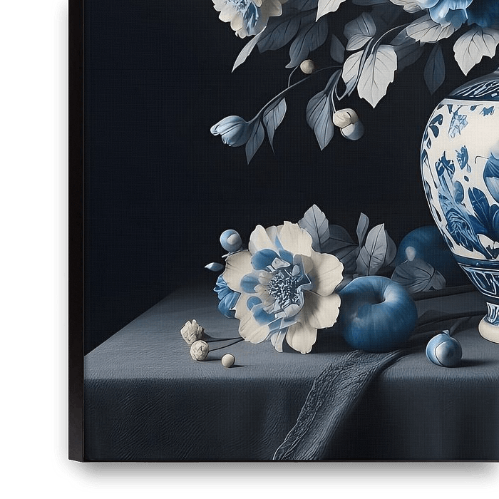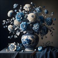 Koop dit bloemen kunstwerk Stilleven; Delftsblauwe vaas met witte en blauwe bloemen van Jessica Berendsen op canvas, aluminium dibond, (ingelijste) fotoprint, behang en ArtFrame, op maat geprint in Fine-Art kwaliteit.