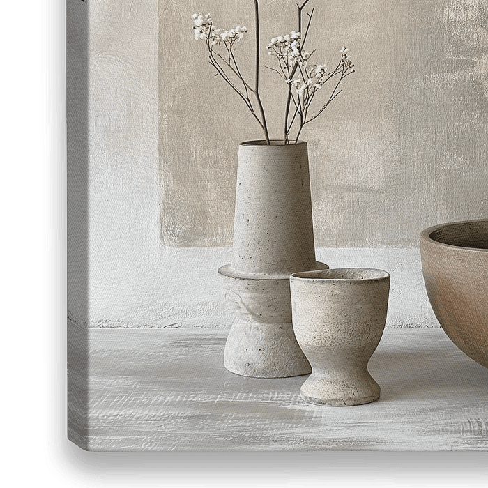 Een rustgevend stilleven in beige tinten, 2 vazen en een pot. Zen, Japandi, Minimalistisch.
