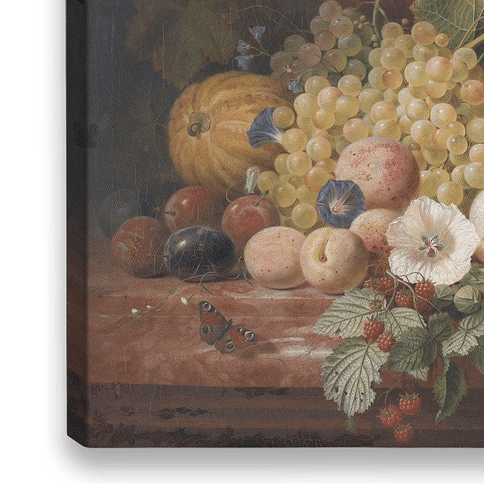 Koop Stilleven met bloemen en fruit, Eelke Jelles Eelkem, Eelke Jelles Eelkem als reproductie op canvas, aluminium dibond, (ingelijste) fotoprint, behang en ArtFrame, op maat geprint in Fine-Art kwaliteit.