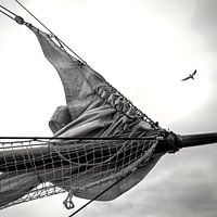 De zwart-wit fotografiestijl geeft de foto een tijdloze kwaliteit, waardoor de verbeelding van de kijker alle details kan invullen die in de loop der tijd verloren zijn gegaan. Terwijl we kijken naar dit moment bevroren in de tijd, worden we herinnerd aan de schoonheid en eenvoud van het leven op zee.