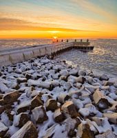 Ijzige pool landschappen bij het Vlietermonument op de Afsluitdijk. Het Vlietermonument bevindt zich bij de Vlieter, de plaats waar in 1932 de Afsluitdijk werd gesloten. Het is een monument in de vorm van een uitkijktoren, ontworpen door architect Willem Dudok. De toren is in 1933 gebouwd.