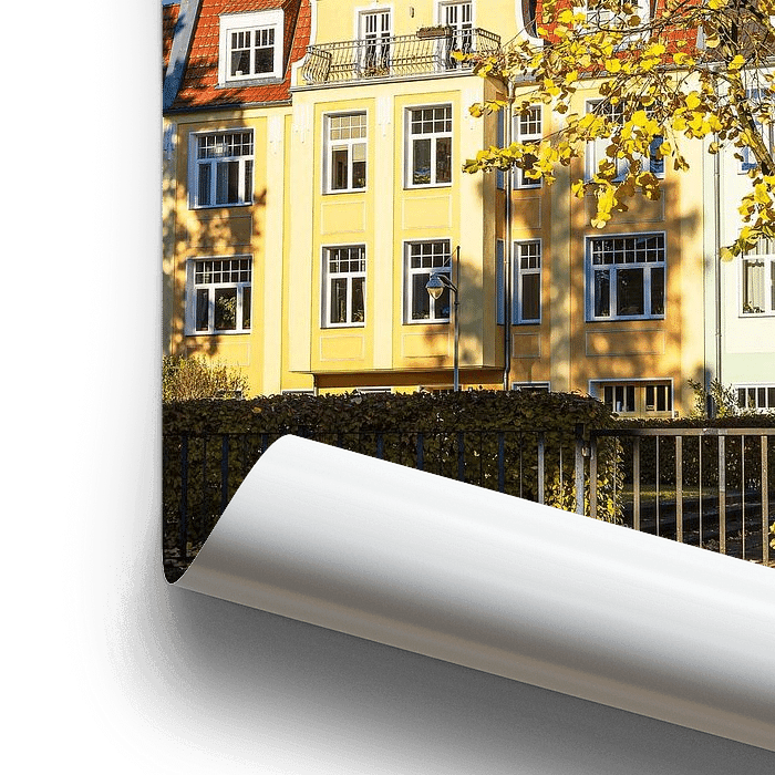 Koop de foto Straat en boom in de Hanzestad Rostock in de herfst van Rico Ködder op canvas, aluminium dibond, (ingelijste) fotoprint, behang en ArtFrame, op maat geprint in Fine-Art kwaliteit.