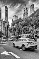 Straatbeeld NYC met Woolworth Building | Monochrom