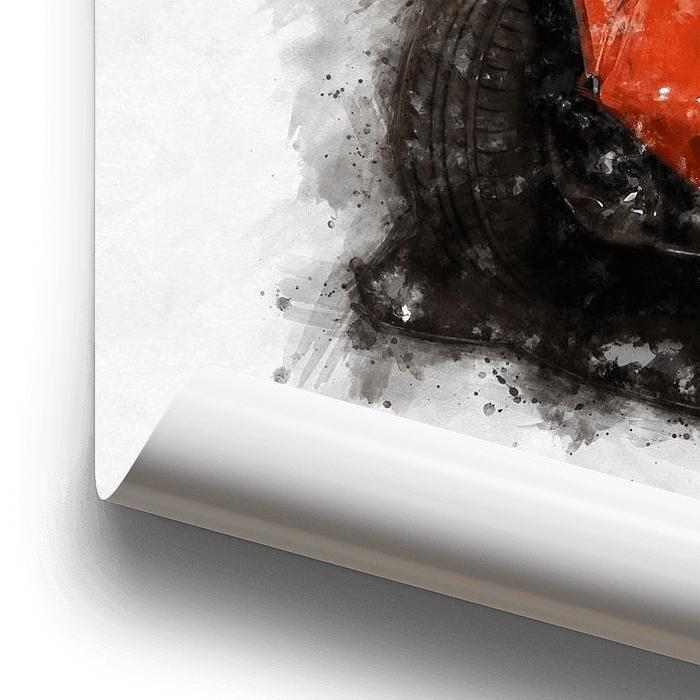 Aquarel uit een serie wereldberoemde auto's. Geschilderd met passie voor liefhebbers van klassieke auto's. Een dynamisch autokunstwerk.