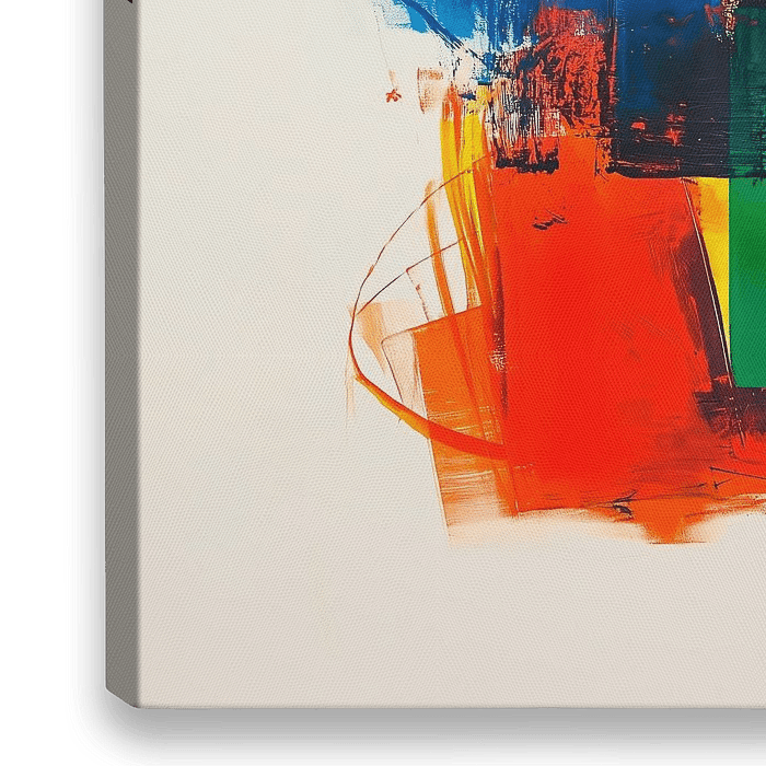 Een modern abstract kunstwerk met kleurrijke penseelstreken in vierkanten en rechthoeken in primaire kleuren die energie en passie oproepen. Een dynamische compositie met een sfeer van creativiteit en expressie.