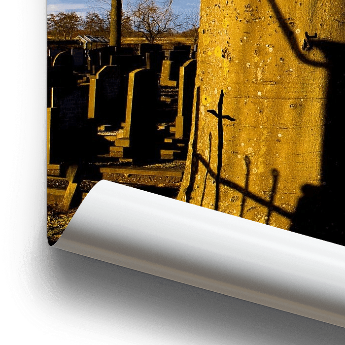 ondergaande zon die zijn laatste licht werpt op de laatste rustplaats met mooie schaduwen en zacht licht