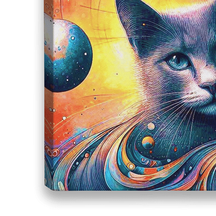 Een surrealistisch Art Deco portret van een vrouw met haar Siamese poes. Haar gezicht is getatoeëerd met felle kleuren. Op haar hoofd een shawl die uitwaaiert. Het is een illustratie geïnspireerd op het werk van Gustav Klimt en gemaakt met A. I. en digitaal bewerkt
