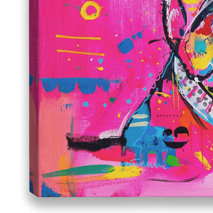 Dit is een druk van een schilderij van mij. Een kleurrijke buldog.