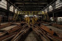 Diepte, symmetrie, lichtval in een vervallen en verlaten kolenmijn. Over de rails reden de trein wagons vol met kolen die ze uit de diepte ophaalden. Door het lijnenspel en de details vol met roest en verval blijf je kijken. Gemaakt in Duitsland.