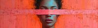Details: vrouw, oranje, schilderij, portret, modern, kunst, minimalisme, gezicht, canvas, abstract