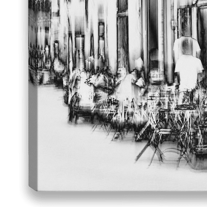 in de straten van Val D'Orcia in Italië kan je genieten van de gezellige terrasjes. Hier is een meervoudige belichting toegepast wat een dromerig effect geeft. Omgezet in zwart-wit.