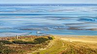 Een luchtfoto van het Waddeneiland Terschelling, de uit Waddenzee en het vaste land.