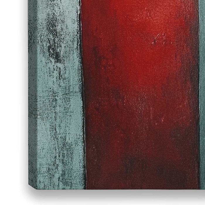 Textured Tones Tango - Dit abstracte schilderij toont een compositie van geometrische vormen in dominante tinten rood, grijs en blauw, waarbij contrast en textuur de visuele spanning versterken.