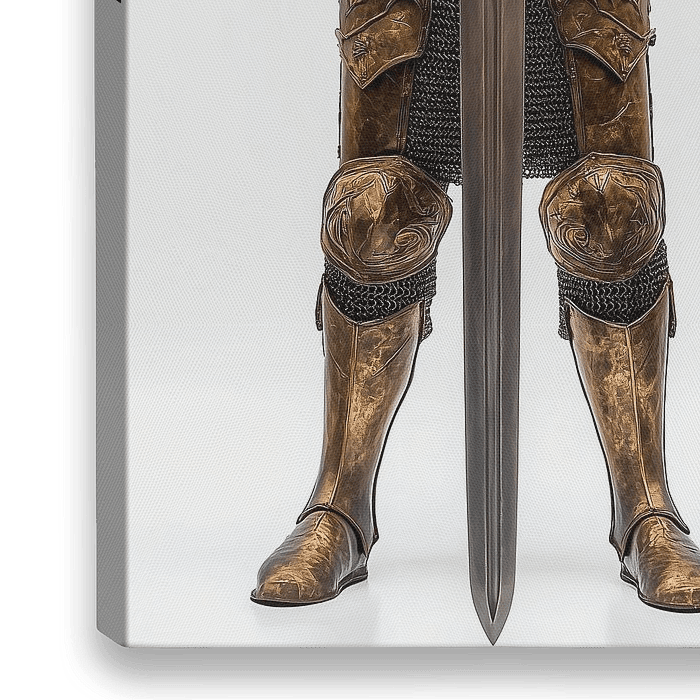 Een middeleeuwse ridder in een gouden harnas, klaar om de strijd aan te gaan.