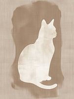 The Refined Feline Guardian - Dit kattenschilderij toont de afbeelding van een kat, strak en gestileerd weergeven. De vorm van de kat is uitgesneden tegen een achtergrond die bestaat uit twee verschillende tinten. De algemene toon van het schilderij is tamelijk monochromatisch, bestaande uit beige en witte tinten die elkaar overlappen…