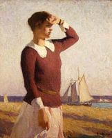 Frank Weston Bensons portret van zijn jongste dochter, Sylvia, is een van de laatste bekende plein air schilderijen die hij maakte van zijn gezinsleden op de hellingen rond hun zomerhuis in Penoboscot, Maine. Duidelijk is hier Benson's meesterschap over het licht te zien. Sylvia schermt haar ogen af voor de zon (een klassieke Benson pose voor zijn modellen) terwijl ze over de baai uitkijkt. Het licht heeft een krachtig effect op de kenmerken van het doek. De zeilen van het schip, het water in de baai en de grond waarop Sylvia staat, zijn allemaal doordrongen van licht en schaduw. Het contrast tussen de twee geeft een prachtig beeld van de dramatische invloed die direct zonlicht op onderwerpen heeft. Het onderwerp van deze en vele andere individuele en groepsschilderijen die Benson maakte, is zachtaardig en verfijnd.