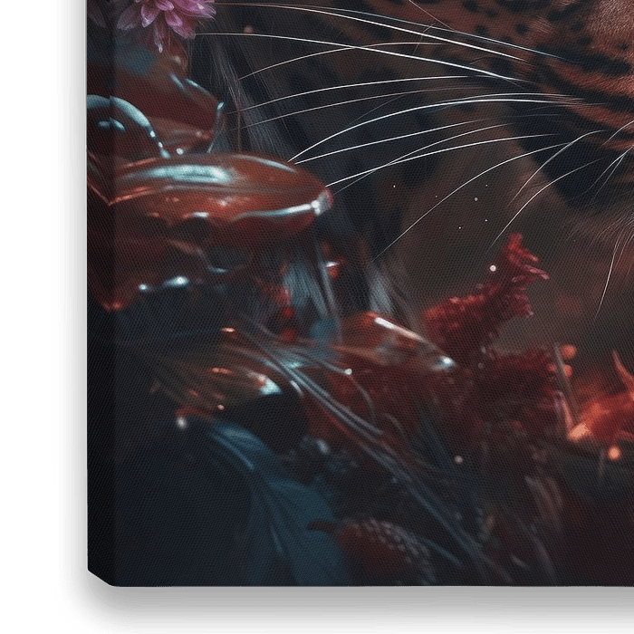 In de diepe, weelderige jungle kijkt een majestueuze tijger je recht in de ogen aan. De zachte zonnestralen filteren door de bomen en werpen een warme gloed op zijn gestreepte vacht, terwijl de bladeren zachtjes ritselen in de achtergrond. Zijn ogen stralen wijsheid en kracht uit, terwijl zijn spieren gespannen zijn en klaar zijn om te…
