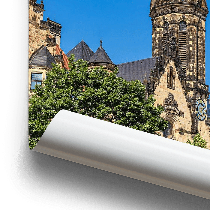 Koop de foto Toren van de Hervormde Kerk in de stad Leipzig van Rico Ködder op canvas, aluminium dibond, (ingelijste) fotoprint, behang en ArtFrame, op maat geprint in Fine-Art kwaliteit.