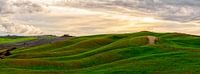 Panorama van een Toscaans landschap net voor zonsondergang.