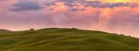 Panorama van een Toscaans landschap net voor zonsondergang.