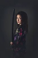 Koop dit bloemen kunstwerk Traditie en Moderniteit: Aziatische Vrouw in Moderne Kimono met Kendozwaard in Fotostudio van Elianne van Turennout op canvas, aluminium dibond, (ingelijste) fotoprint, behang en ArtFrame, op maat geprint in Fine-Art kwaliteit.
