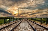 Sfeervolle foto van treinrails die in de verte verdwijnen aan de horizon met een mooie lucht als extra bonus .