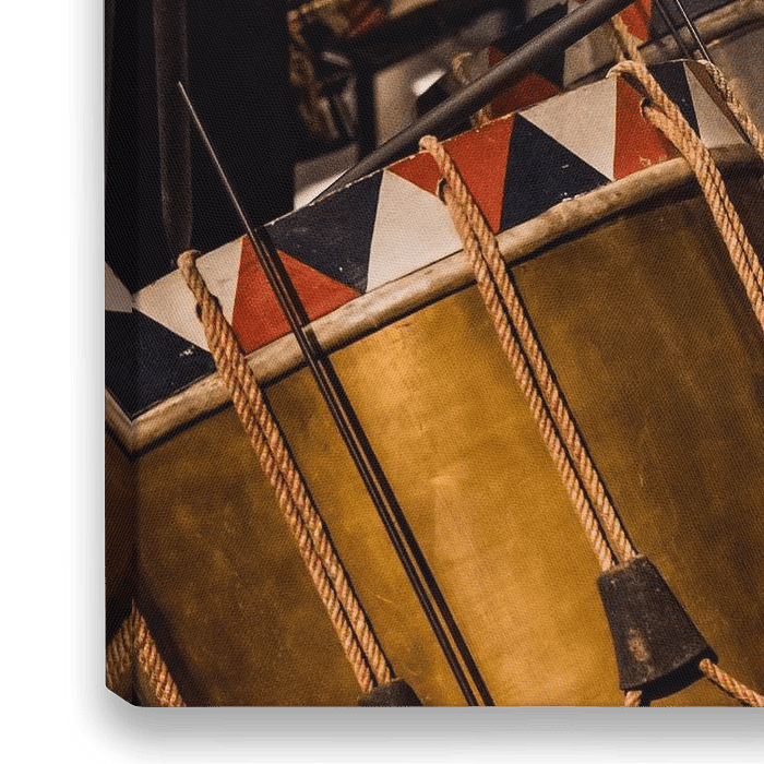 Symmetrische opstelling van trommels in het Rijksmuseum Amsterdam.