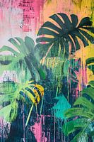 Koop dit landschapskunstwerk Tropische bladeren met abstracte kleuren van Art & Soul Creations als print op canvas, aluminium dibond, (ingelijste) fotoprint, behang en ArtFrame. Voor jou op maat geprint in Fine-Art kwaliteit.