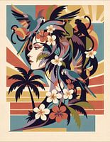 Koop dit bloemen kunstwerk Tropische harmonie: De vrouw verweven met de natuur van Jan Keteleer op canvas, aluminium dibond, (ingelijste) fotoprint, behang en ArtFrame, op maat geprint in Fine-Art kwaliteit.