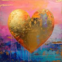 Details: abstract, hart, neon, liefde, modern, canvas, roze, goud, blauw, paars