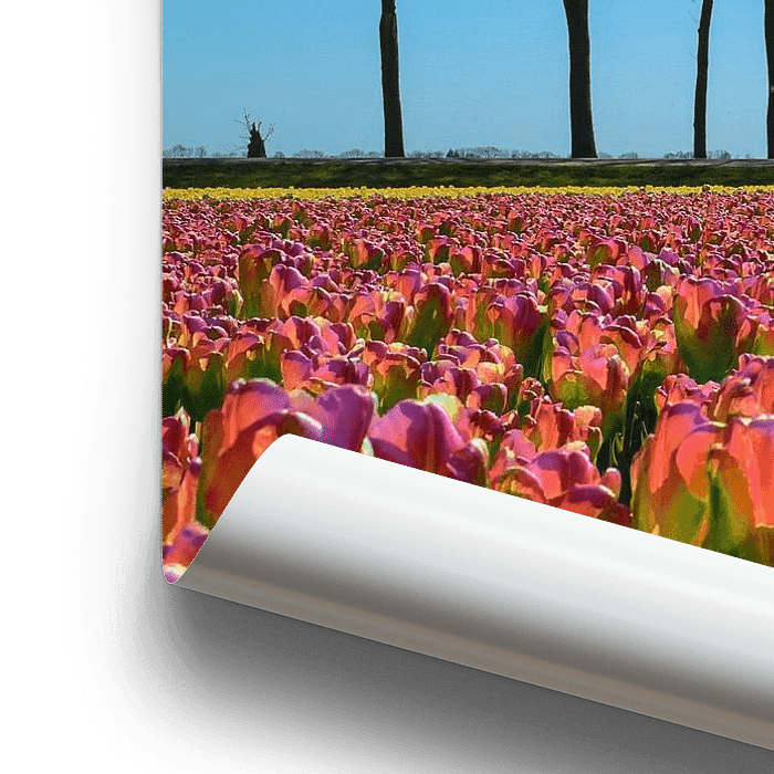 Lente in de polder, tulpenveld in Flevoland. In Flevoland wordt elk jaar het tulpenfestival gehouden. Een route van ruim 100 km. door en langs de tulpenvelden. Van eind april tot begin mei.