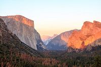 Tunnelview bij zonsondergang in de herfst in Yosemite National Park. Het bekendste uitzicht van Yosemite.