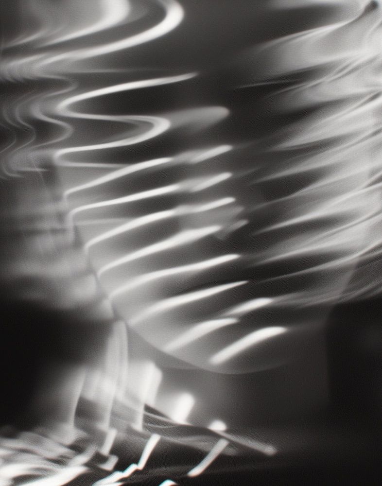 Dynamische abstractie van het menselijk portret, waar de contouren en gelaatstrekken lijken op te gaan in een vloeiende beweging van licht en schaduw. De afbeelding is gedomineerd door een monochromatisch kleurenpalet, waarbij de nadruk ligt op de gradaties van zwart, wit en de nuances daartussen. Het gezicht op de voorgrond is niet statisch maar lijkt door een soort vervorming of beweging te zijn beïnvloed, wat een gevoel van transformatie of vervaging van de identiteit oproept. Deze vervorming kan wijzen op de vluchtigheid en veranderlijkheid van de menselijke natuur.
