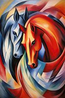 Koop dit abstracte kunstwerk Twee paarden van ARTemberaubend op canvas, aluminium dibond, (ingelijste) fotoprint, behang en ArtFrame, op maat geprint in Fine-Art kwaliteit.