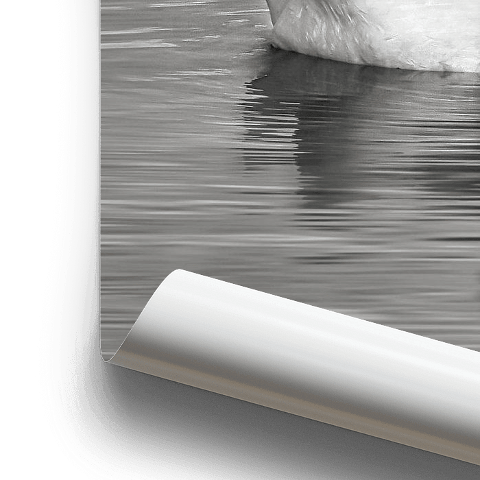Twee zwemmende zwanen in het Twiske bij Amsterdam. zwart wit foto met kleuraccent. Gefotografeerd in het natuurgebied hetTwiske, bij Amsterdam. Contact, verbondenheid.