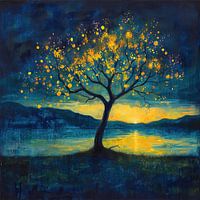Twilight Vigil Glow - schilderij neon boom zonsondergang