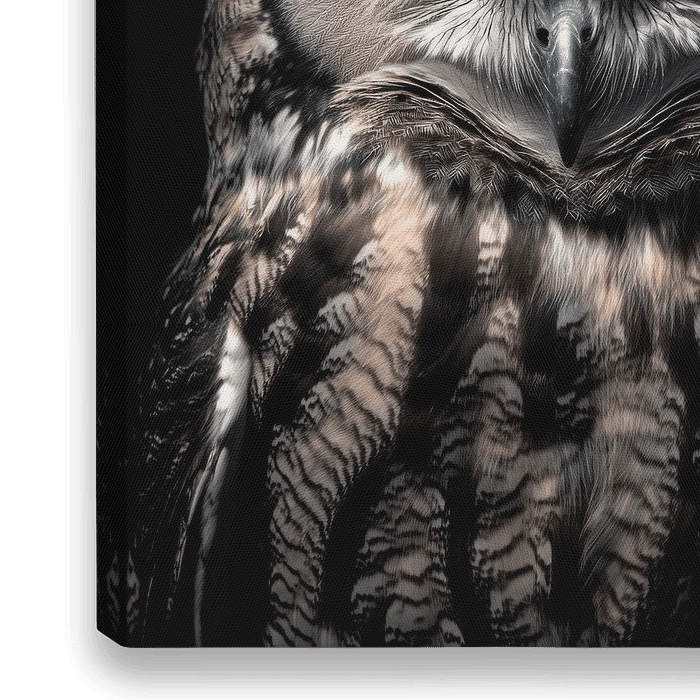 De mysterieuze uil met zijn doordringende, gloeiende ogen trekt onmiddellijk de aandacht. Zijn majestueuze verenkleed en betoverende blik geven elke kamer een sfeer van wijsheid en rust. Ideaal voor in de woonkamer, een indrukwekkende gespreksstarter en een vleugje natuur en mystiek in huis.