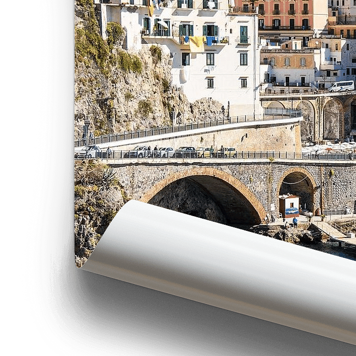 Koop de foto Uitzicht op Atrani aan de Amalfikust in Italië van Rico Ködder op canvas, aluminium dibond, (ingelijste) fotoprint, behang en ArtFrame, op maat geprint in Fine-Art kwaliteit.