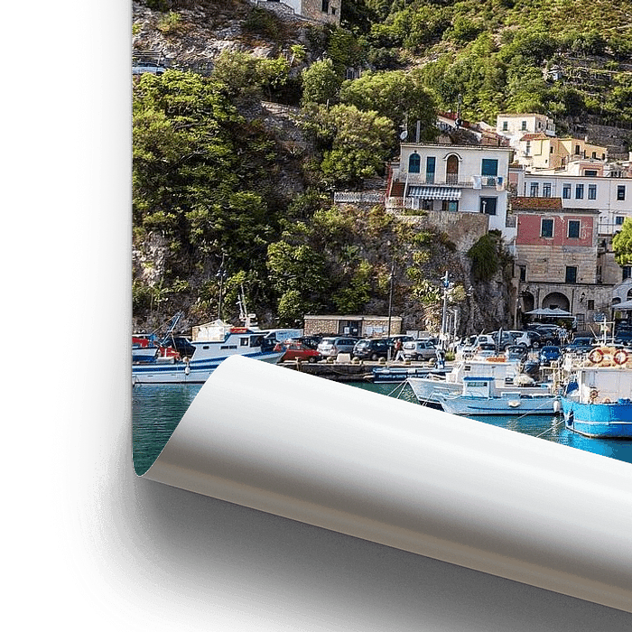 Koop de foto Uitzicht op Cetara aan de Amalfikust in Italië van Rico Ködder op canvas, aluminium dibond, (ingelijste) fotoprint, behang en ArtFrame, op maat geprint in Fine-Art kwaliteit.