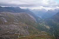 Uitzicht op de Geirangerfjord, vanaf het uitzichtpunt op de tolweg Dalsnibba