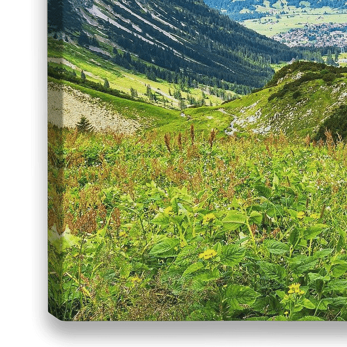Koop dit landschapskunstwerk Uitzicht op Oberstdorf en de Alpen vanaf de Nebelhorn van Rico Ködder als print op canvas, aluminium dibond, (ingelijste) fotoprint, behang en ArtFrame. Voor jou op maat geprint in Fine-Art kwaliteit.