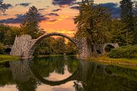 Uitzicht op de Rakotzbrücke-brug in het Kromlauer Park in Saksen