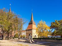 Koop de foto Uitzicht op de Steintor in de Hanzestad Rostock in de herfst van Rico Ködder op canvas, aluminium dibond, (ingelijste) fotoprint, behang en ArtFrame, op maat geprint in Fine-Art kwaliteit.