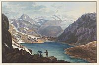 Vue de la source du Rhein antérieur, du Lac Toma, sur le Mont Badus, Johann Ludwig Bleuler Johann Ludwig Bleuler, ook wel Louis genoemd, was een Zwitserse schilder, landschapskunstenaar en uitgever.