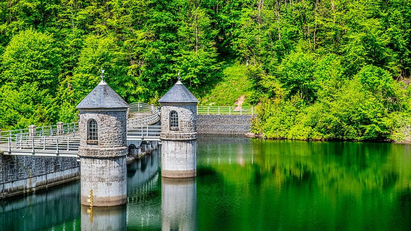 Koop de foto Uitzicht op de stuwdam van Neustadt in het Harzgebergte van Andreas Völkel als print op canvas, aluminium dibond, (ingelijste) fotoprint, behang en ArtFrame. Voor jou op maat geprint in Fine-Art kwaliteit.