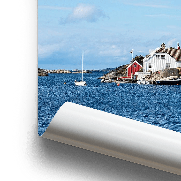 Koop de foto Uitzicht op het dorp Brekkestø in Noorwegen van Rico Ködder op canvas, aluminium dibond, (ingelijste) fotoprint, behang en ArtFrame, op maat geprint in Fine-Art kwaliteit.