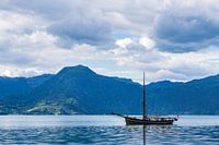 Uitzicht over de Åkrafjord met zeilschip in Noorwegen van Rico Ködder