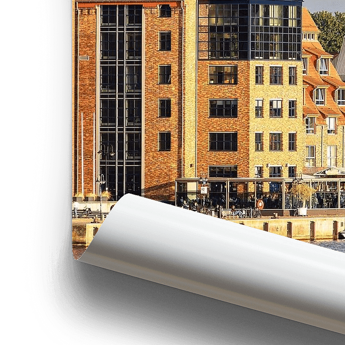 Koop de foto Uitzicht over de Warnow naar de Hanzestad Rostock van Rico Ködder op canvas, aluminium dibond, (ingelijste) fotoprint, behang en ArtFrame, op maat geprint in Fine-Art kwaliteit.