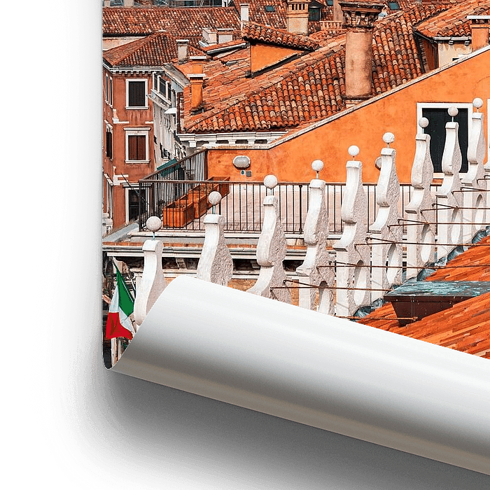 Over ‘Uitzicht over de daken in Venetië, Italië’ van Rico Ködder